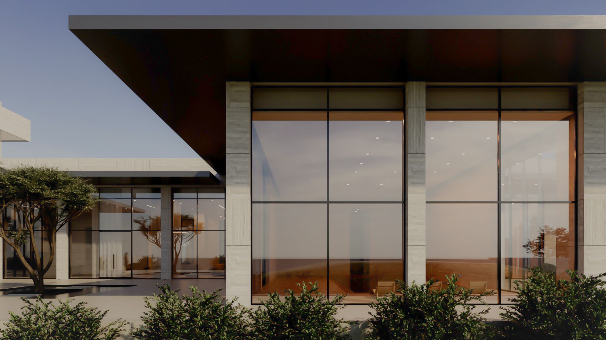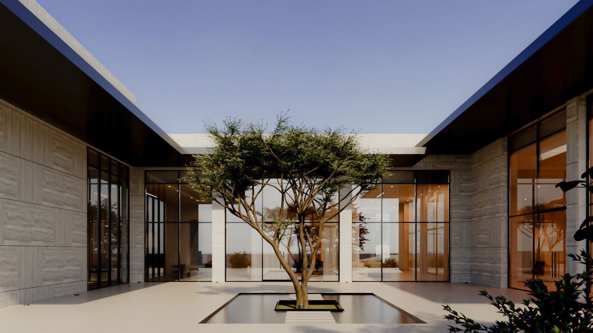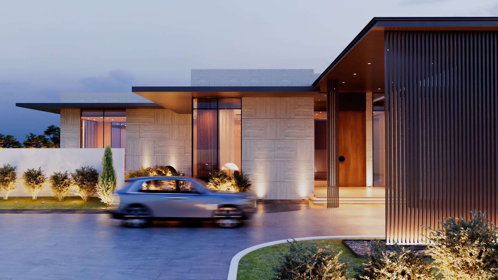 The design embraces openness and light, featuring expansive glass façades, natural stone textures, and carefully framed views of greenery that bring nature into the heart of the home. With a strong focus on spatial harmony, the villa offers both grandeur and intimacy—inviting open courtyards, serene landscapes, and a flow that connects indoor and outdoor living effortlessly.